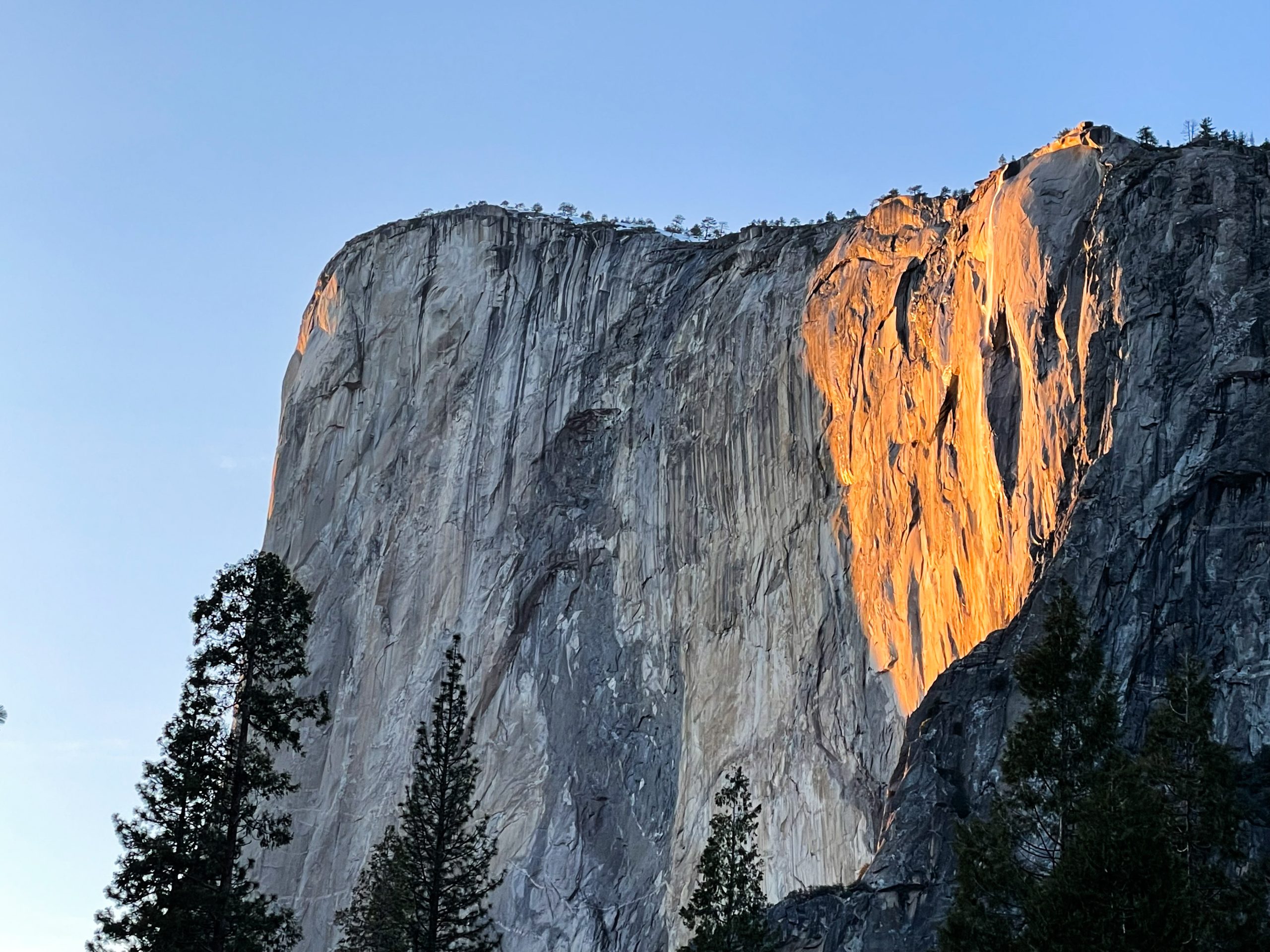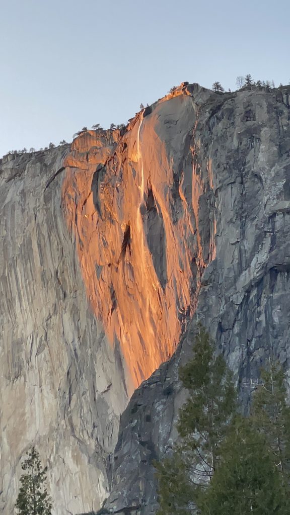 If you search for “Firefall in Yosemite,” you’ll likely find a collection of stunningly edited photographs, showcasing a delicate sliver of waterfall glowing in the evening light. You might imagine the sun’s rays hitting only the falls, creating a magical spotlight. But in reality, the light illuminates a broader surface, surrounding the falls with a warm glow that forms a heart-shaped frame around the Firefall, creating a truly romantic and mesmerizing sight.