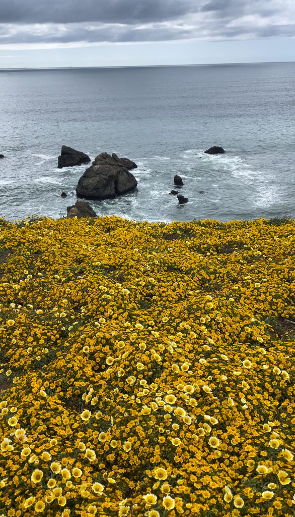 February marks the arrival of the first wildflower and mustard carpets along the coast. While mustard is invasive, it creates stunning yellow vistas that are hard to resist. Here are two trails where you can enjoy these early blooms. Don’t forget your camera and enjoy the first hints of spring!