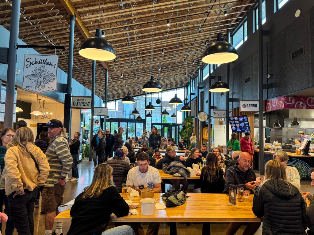 We went to The Grove — a trendy food hall with tons of delicious options. I had a hard time choosing what to eat (too many good menus!), but we ended up sharing dishes from a Thai spot and a Mediterranean kitchen. Both were fantastic. Highly recommend The Grove if you’re in Bend and want a casual but tasty dinner with options for everyone.