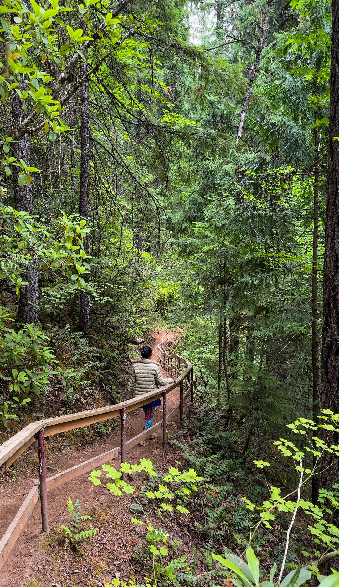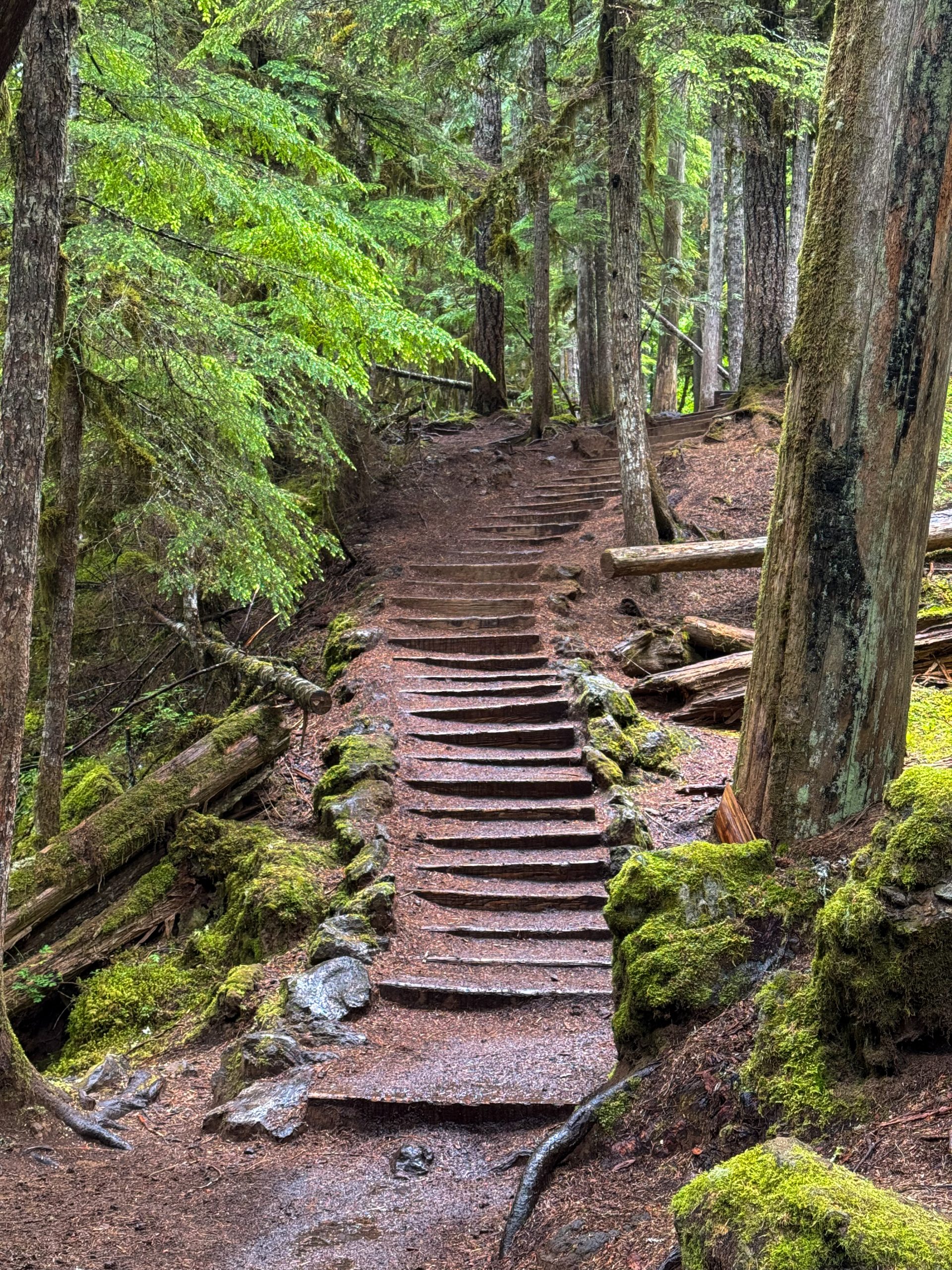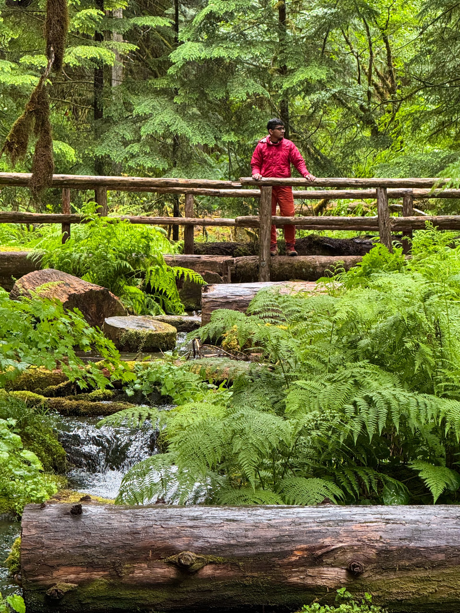 Our first hike of the day was the Waterfall Loop, a 4-mile trail that connects Sahalie Falls, Koosah Falls, and the Carmen Reservoir in one gorgeous loop. This trail felt straight out of a fairytale — the river roared beside us, the rocks were covered in thick green moss, and every inch of the forest looked alive and glowing after the rain.