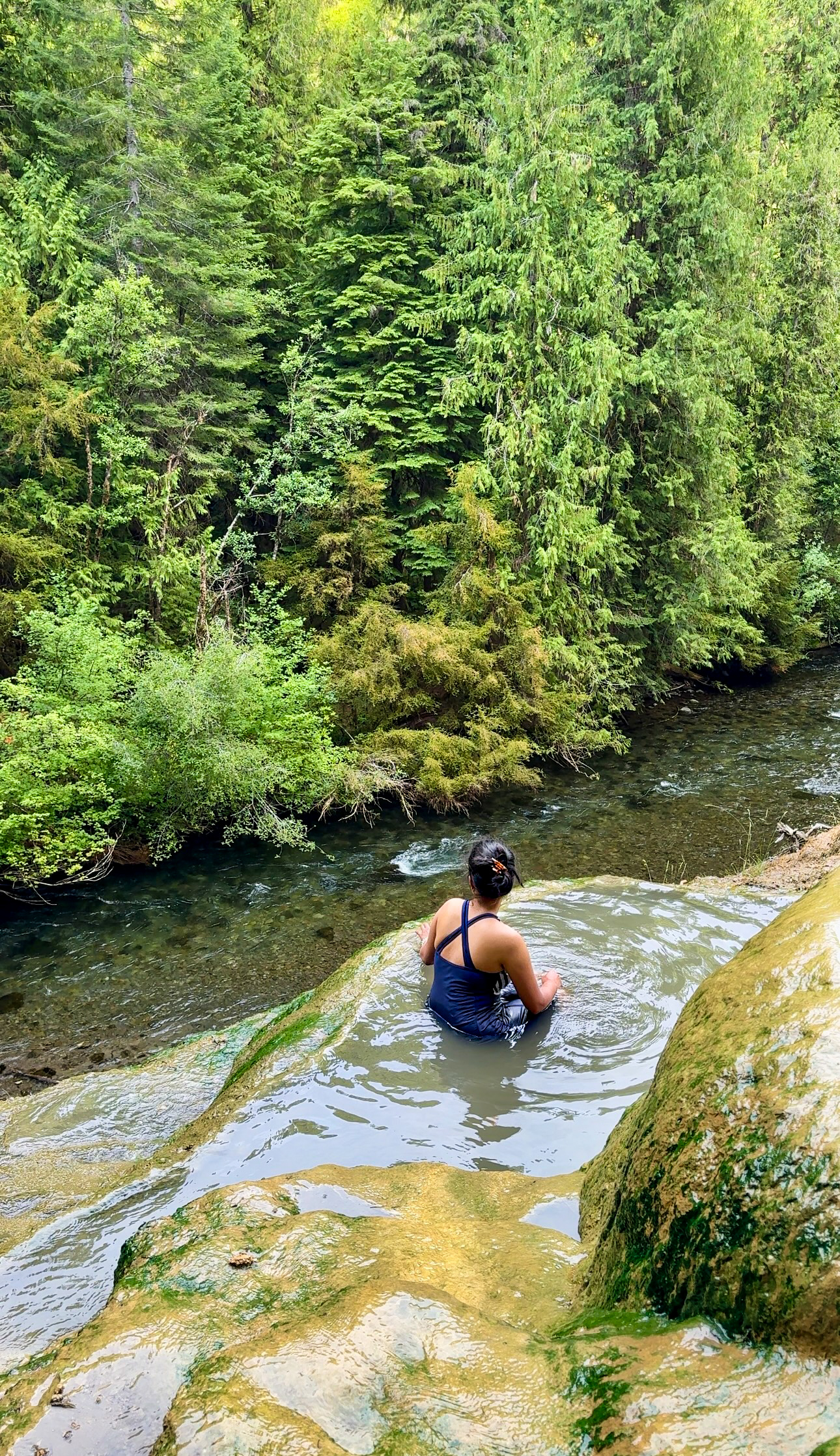 We saved our last few hours of the day for one of Oregon’s wild hot springs: Umpqua Hot Springs. A short 0.5-mile uphill trail leads to a cluster of natural pools nestled on a hillside overlooking the river and forest below. It’s beautiful — but also popular.