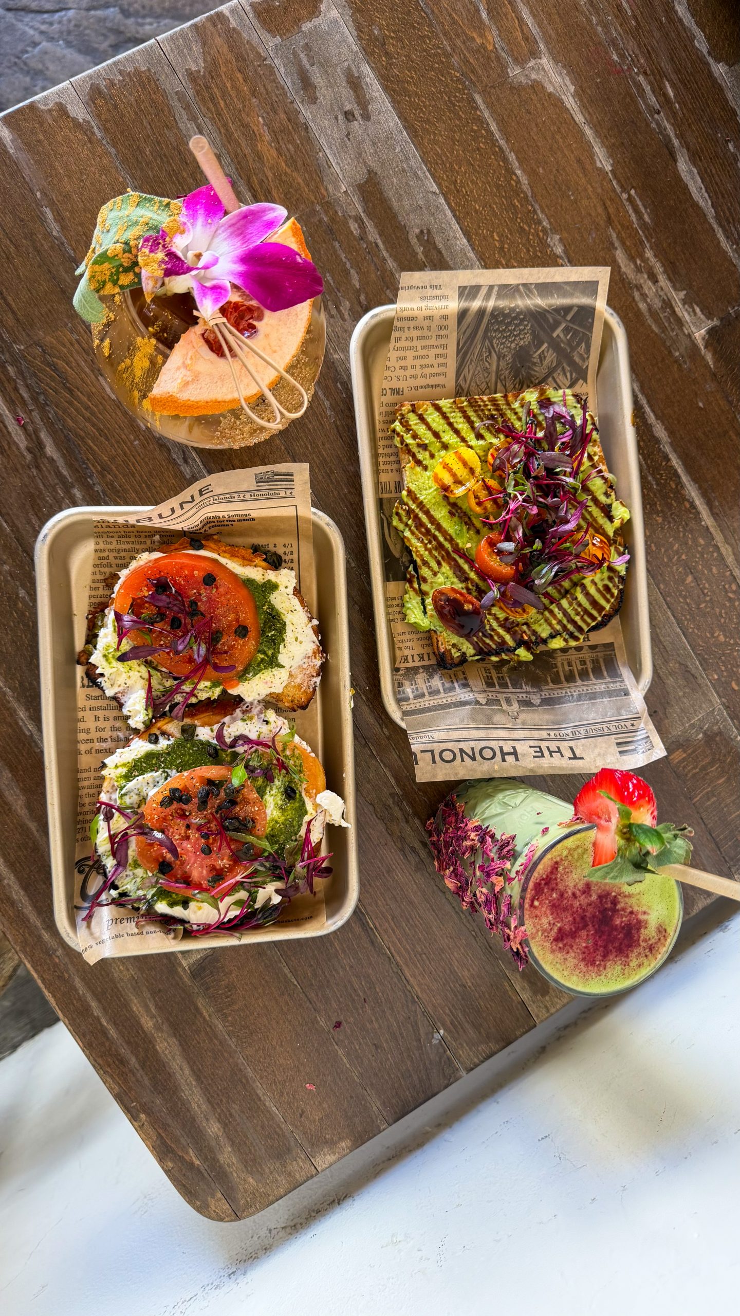 After hiking back and freshening up, head to Caje Coffee Roasters for what might be the most beautiful brunch in the city. We ordered the Bella Rose and Jupiter’s Forest lattes, along with the avocado toast and the Works bagel.
