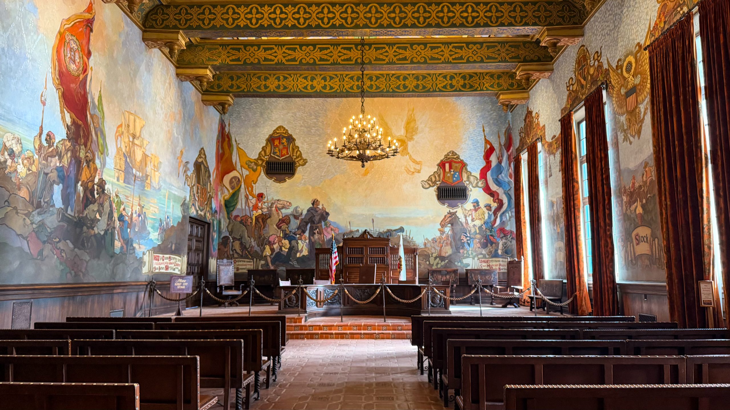 Before you head back down, spend a few minutes in the Mural Room on the second floor; the hand-painted walls tell the story of California’s history in a space that feels like a European palace.