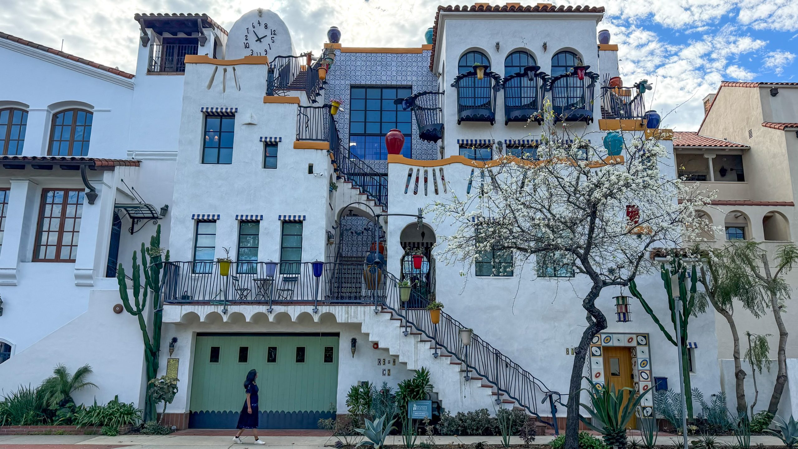 Spend your final afternoon on a self-guided scavenger hunt for the work of architect Jeff Shelton. His buildings are a whimsical rebellion against the city’s strict white-stucco rules, featuring curved walls, hand-painted tiles, and ironwork that looks straight out of a storybook. Most of his most famous creations are clustered in a small area downtown, making for an easy self-guided walking tour. Here are the “must-sees”.