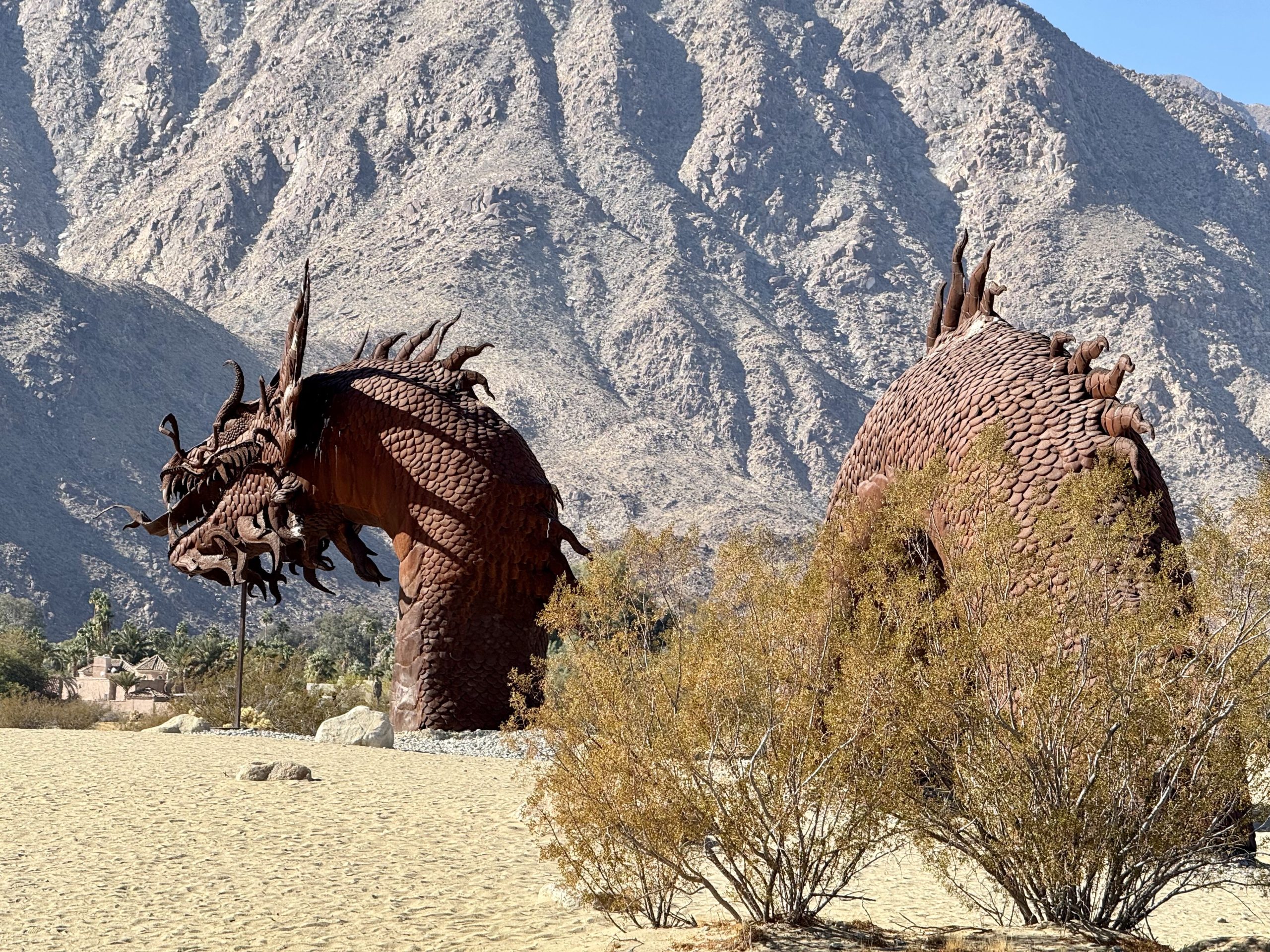 Our first stop was Galleta Meadows, an area known for its amazing art installations scattered throughout the desert. One of my favorite pieces was the massive dragon sculpture—it’s definitely a must-see if you’re in the area! The art was a super fun surprise, and we had a blast exploring and snapping photos with these giant, quirky pieces.