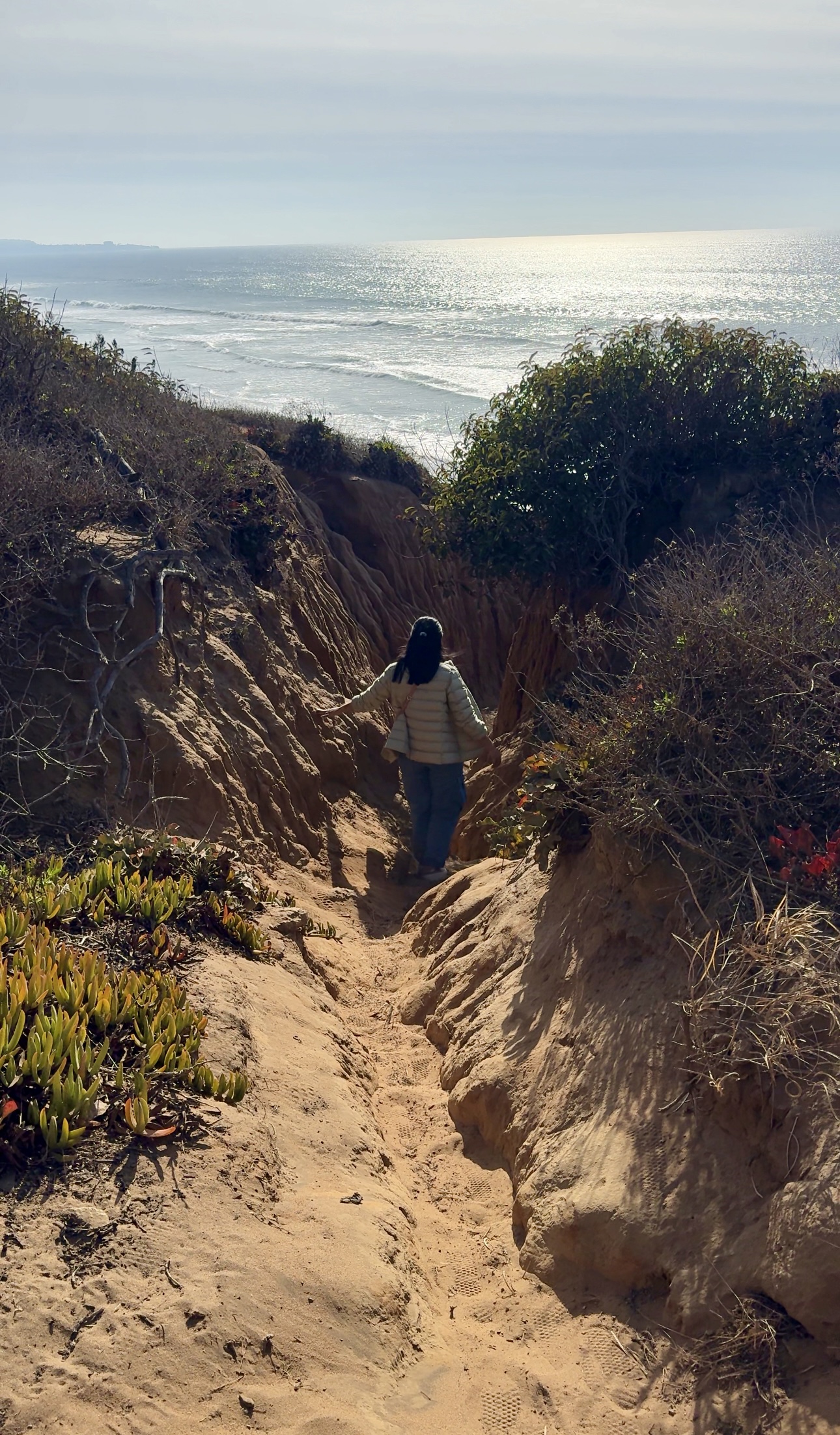 Next, we headed over to Del Mar for some last-minute beach vibes. San Diego is known for its iconic view of the Amtrak train crossing along the beach, and we couldn’t leave without catching it! This spot is also called the Sunset Train View, and it’s one of those quintessential San Diego pictures you’ll want to snap. Along Camino del Mar, there’s a gorgeous trail perfect for a beachside walk. If you have more time, head over to Torrey Pines—you can catch some amazing views of gliders at the Torrey Pines Gliderport while soaking in the coast.
