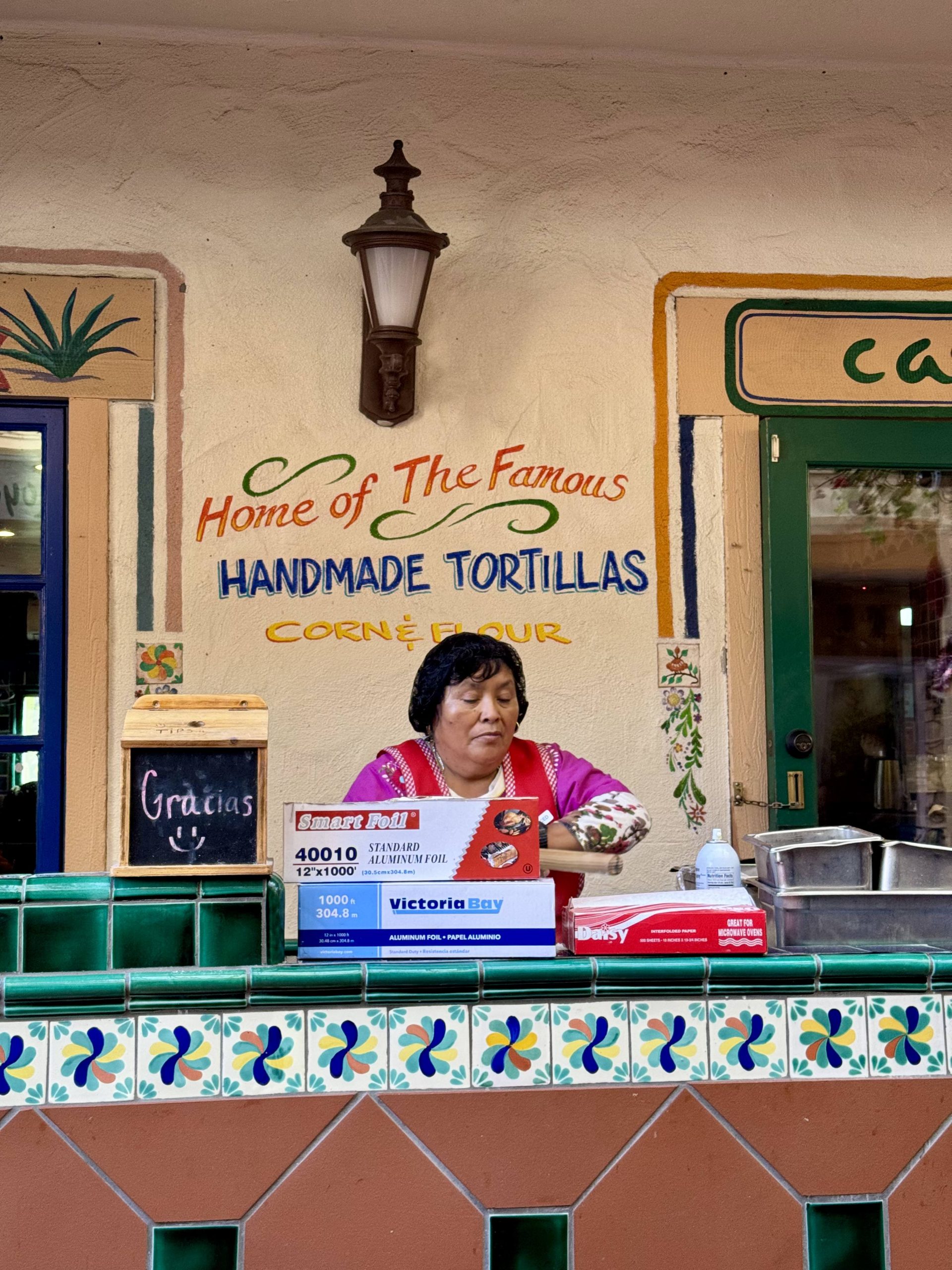 We arrived in San Diego bright and early, and the first stop on our adventure was Old Town for some delicious Mexican cuisine. After picking up our rental car at the airport, we headed straight to Cafe Coyote, and it did not disappoint! The place was buzzing with energy—colorful murals, vibrant decorations, and the sweet aroma of freshly made tortillas in the air. We even got to watch an abuelita (grandmother) making tortillas by hand—such a charming experience!