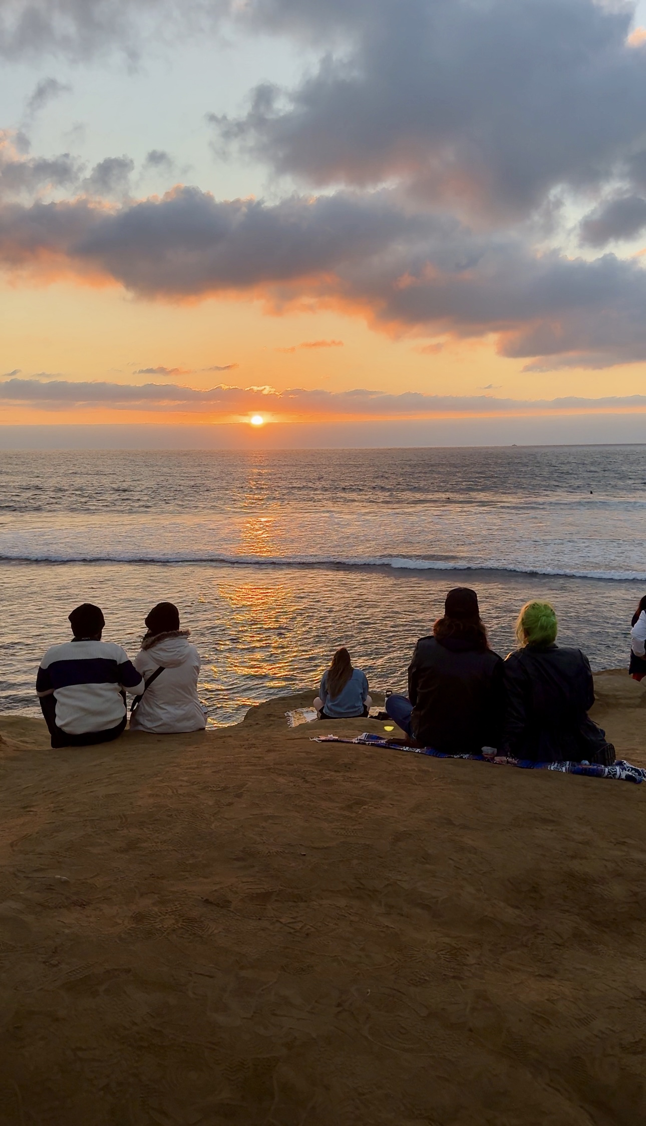 After an amazing day in the desert, we made our way back to the city and headed straight to Sunset Cliffs to catch the sunset. And let me tell you, it felt like the whole city had the same idea—people were everywhere, sitting on picnic blankets, enjoying the view of the ocean, the fiery sky, and the surfers catching waves below. There was such a chill, laid-back vibe, and it really felt like everyone was there to witness nature’s show.