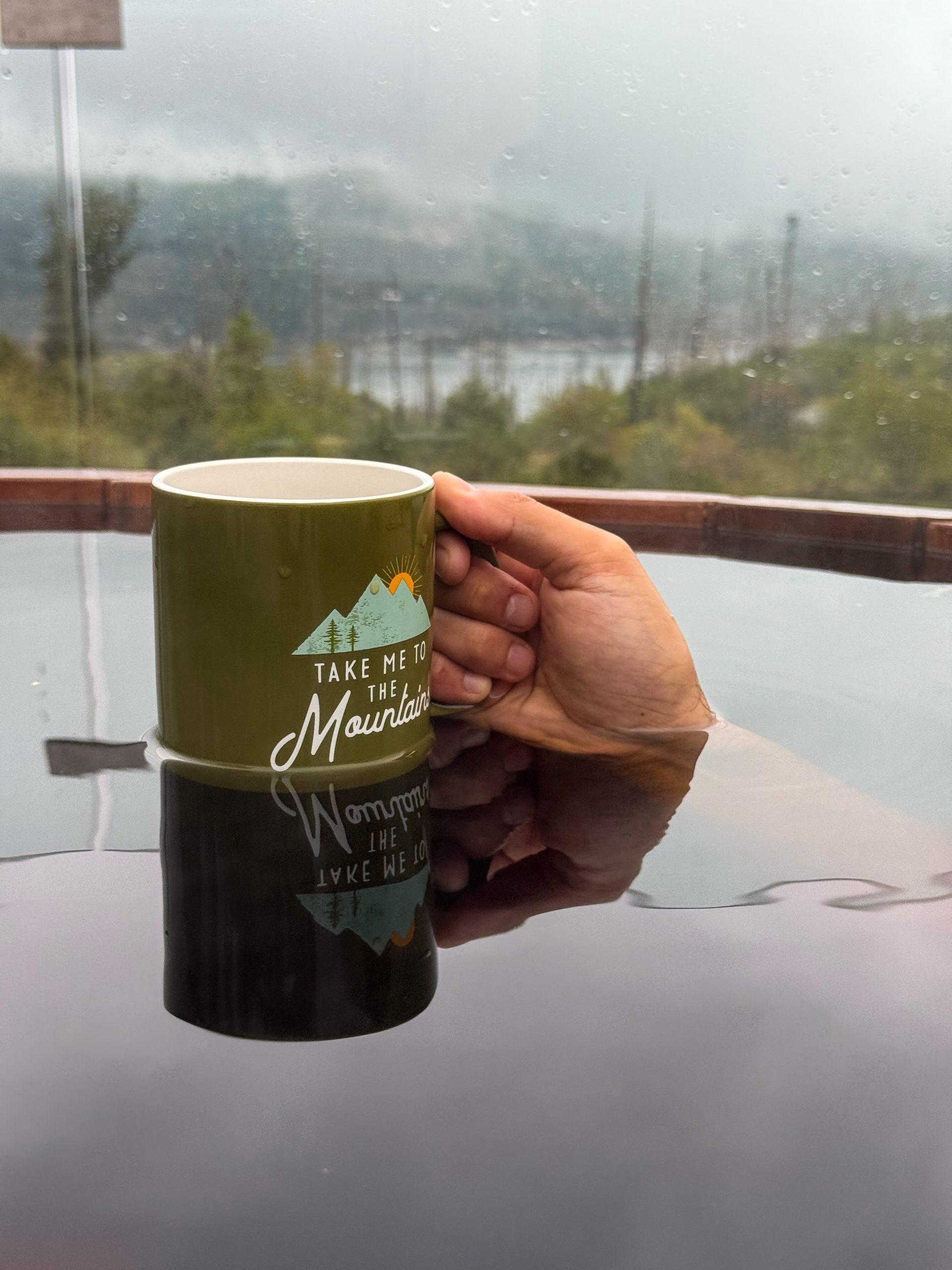 We visited in late April, and honestly? It felt like stepping into a postcard. Mountain and lake views stretched out in every direction, soft rain misted the treetops, and fog drifted through the hills like something out of the Pacific Northwest. At one point, it even snowed for a couple of hours—yes, snow in April! It was pure magic.