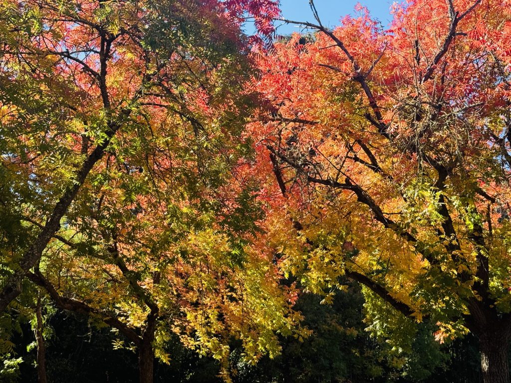 The first to turn are the Chinese pistache trees, which start showing fiery reds and oranges right after Halloween. Soon after, maples and ginkgos trees follow, painting streets and parks in rich shades of gold and crimson. Peak color typically hits between the first and third weeks of November, depending on the species and microclimates.